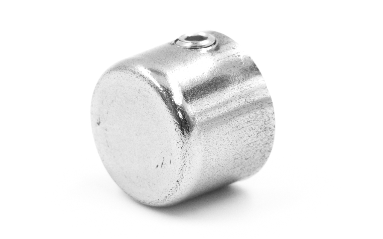 Заглушка наружная с отверстием на трубу диаметром 12 мм. Деталь полированная, штампованная. Марка стали - AISI 304