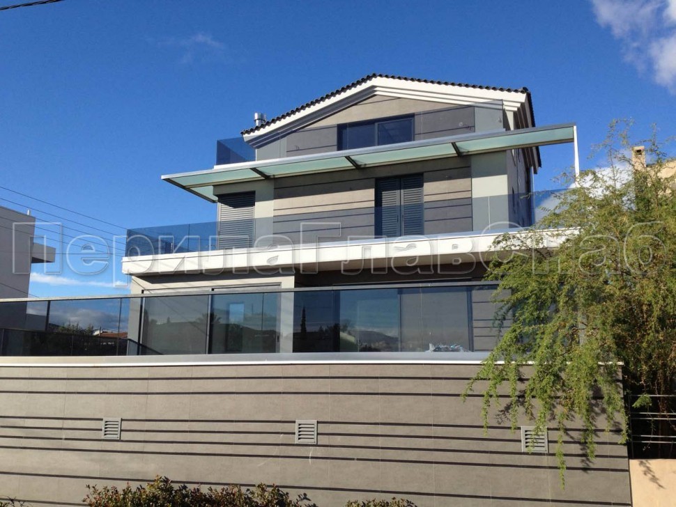 Ограждение кровли на несущем стекле и алюминиевом профиле