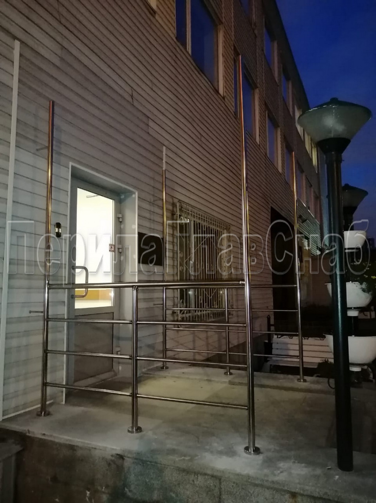 Конструктив: Козырёк  на  каркасе из  нержавеющей  стали  AISI 304 с  дополнительными  поручнями  на крыльце, навес  выполнен из    монолитного  поликарбоната 8.0 мм.