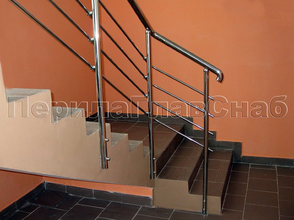 Крепление стоек было торцевое, так как по просьбе заказчика необходимо было максимально увеличить полезную ширину марша, согласно строгим требованиям безопасности.