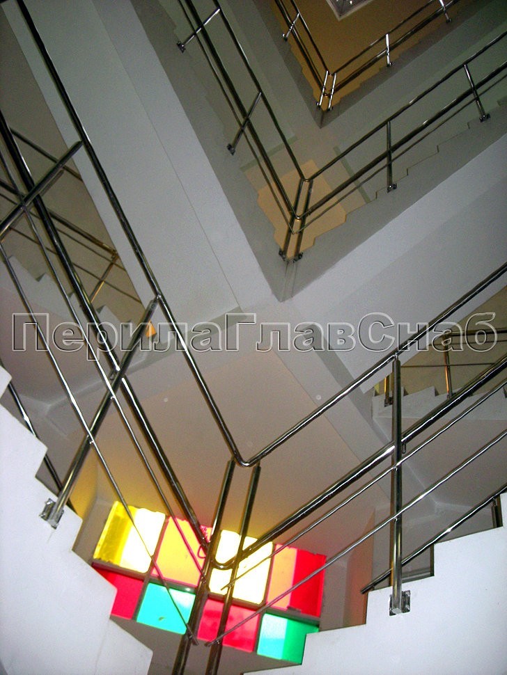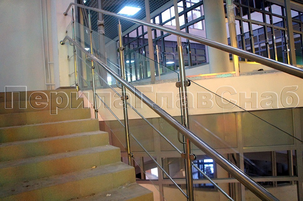 Ещё одной немаловажной особенностью стала необходимость сохранить максимум свободного пространства на лестнице. Ради этого стойки ограждения монтировались прямо в торец лестничного марша, благодаря чему удалось создать дополнительное пространство по ширине в целях обеспечения максимальной пропускной способности конструкции.
