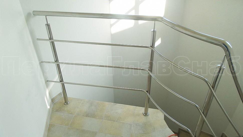 Заказчиком был одобрен предложенный нашими специалистами проект на установку трехригельного ограждения из полированной нержавеющей стали. Также были установлены стойки диаметром 38мм — устанавливаются через каждые три ступени на четвертую. Крепление стоек выполнено методом бурения и вклеивания, на верх стойки устанавливается штырь, а низ, как и окончание поручня, закрывается заглушкой. Поверх стоек установлен поручень из нержавеющей стали — он, как и ригели, завязан по винту. Крепление нержавеющих элементов ограждения между собой выполнено при помощи точечной аргонно-дуговой сварки, длина швов после нее — 2мм, на финальном этапе монтажа швы были зачищены и отполированы.
