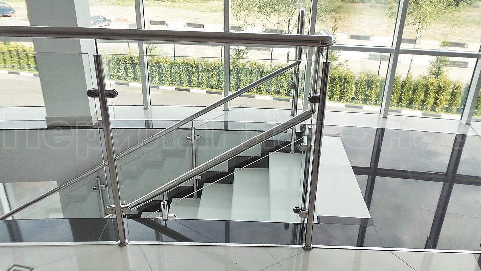 Складскому комплексу с административно-бытовыми помещениями было установлено ограждения двух внутренних центральных лестниц и атриума из полированной нержавеющей стали AISI 201 со стеклом. Высотой 950 мм и 1200 мм, стойки диаметр 38 мм, крепление сверху методом алмазного бурения диаметром 42 мм на глубину 70 мм, устанавливаются через две ступени в третью, наконечник стойки штырь, низ стойки декоративная крышка диметр 56 мм; стекло прозрачное закаленное 8 мм, крепится на зажимных стеклодержателях; поручень диметр 50,8 мм, окончание поручня заглушка. Крепление нержавеющих элементов ограждения между собой точечная аргонно-дуговая сварка, с последующей зачисткой и полировкой. г. Москва, ЗАО, внутригородское муниципальное образование Ново-Переделкино, промзона Орлово, проектируемый проезд 635.