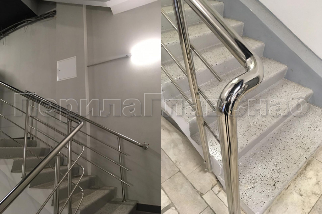 Большая работа по установке нержавеющих ограждений  была проделана в течение 2019г в городе Зеленограде. В четырех корпусах компании заказчика ЭЛМА был произведен капитальный ремонт. Который включил в себя демонтаж и монтаж перил в исполнении компании ПерилаГлавСнаб. Работы по изготовлению и монтажу ограждений велись поэтапно и смежно с отделочной организацией. Т.е. необходимо было согласовывать шаги по графику производства не только с заказчиком, но и с его субподрядчиком. Как раз для этих целей наш прораб каждый день находился на объекте. Двести восемьдесят два метра погонных перил одинакового конструктива, но с разным методом крепления стоек установили штатные монтажники компании ПерилаГлавСнаб. Ввиду того что ширина лестничных маршей была разная на всех лестницах. Необходимо было выдержать пожарные нормы, для безопасной эвакуации людей в возможной чрезвычайной ситуации. Торцевое (боковое) крепление стоек для усиления  в начале марша поручень для жесткости торцевого крепления основных перил уходит вбок и в пол, сменяло от лестницы к лестнице бурение сверху в ступень по средствам алмазных коронок с подачей воды, что бы избежать запыления помещения. Изюминкой проекта стал незаметный глазу перепад высоты ограждения по маршу 950 мм на высоту ограждения площадки в 1100 мм. Такого результата  получилось достигнуть играя высотой стоек, чем могут похвастаться наши высококвалифицированные и опытные бригады монтажников. Стоимость погонного метра в данном заказе составила 4 870 рублей.