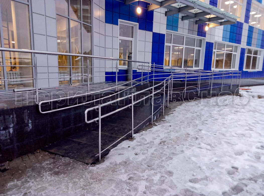 Зимой 2020 года мы установили ограждение входной группы и пандуса в поселке Першино, Владимирской области. Наш заказчик филиал НПО «Наука» должен отвечать самым высоким требованиям, как в своей продукции, так и в строительных мероприятиях. Именно поэтому они привлекли специалистов из компании «ПерилаГлавСнаб». Перед нами стояла задача изготовить и установить семьдесят восемь метров ограждения из полированной нержавеющей стали марки AISI 304. Самая большая сложность заключалась в том, что монтаж стоек нужно было производить в пол с электрическим отоплением покрытым керамогранитом. Для этого применили тепловизор, дабы попасть в те зоны, где не проходила проводка теплого пола. При монтаже использовалась зимняя химия, это обеспечило скорейшее застывание стоек ограждения в условиях зимы. В нескольких участках поручень и ригельное заполнение стоек прокатывалось по радиусу специальным трубогибом, что бы повторить контур самой входной группы. Как всегда, в работе были применены комплектующие собственного производства. Так же для данного проекта были разработаны и использованы удлиненные держатели поручня пандуса. Это было связано с толщиной вент фасада. Была необходимость жестко закрепить поручень в монолит здания пройдя фасад. Все эти мероприятия были применены, что бы отвечать требованиям ГОСТа по ширине пандуса между поручнями. Монтажные работы произведены в десятидневный срок, успешно сданы штатным прорабом прямо на объекте стороне заказчика. Стоимость метра погонного 7 950 руб.