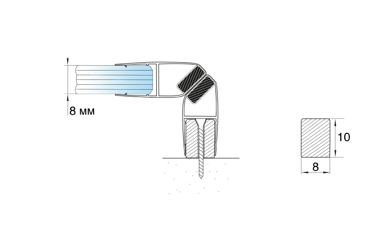 Уплотнитель для стекла 8мм, 90°, стекло-стекло 2,2 м.длина уса 25 мм t215y-8