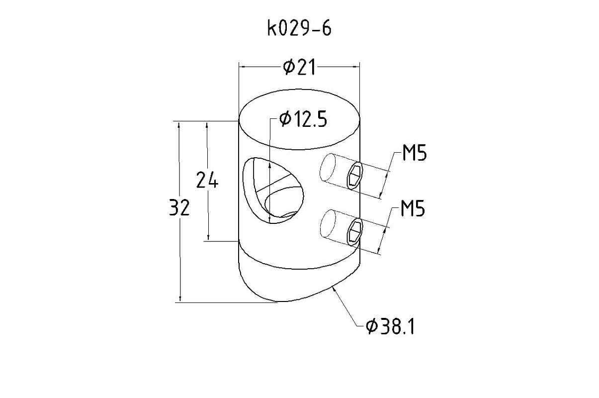 Для монтажа ригельных ограждений. Для крепления трубы Ø12 мм из нержавеющей стали к стойке Ø38.1 мм на ограждении с ригелями