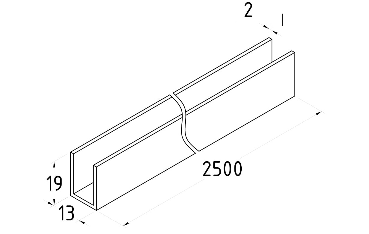 П-образный профиль 19x13, L=2500, алюминий шлифованный