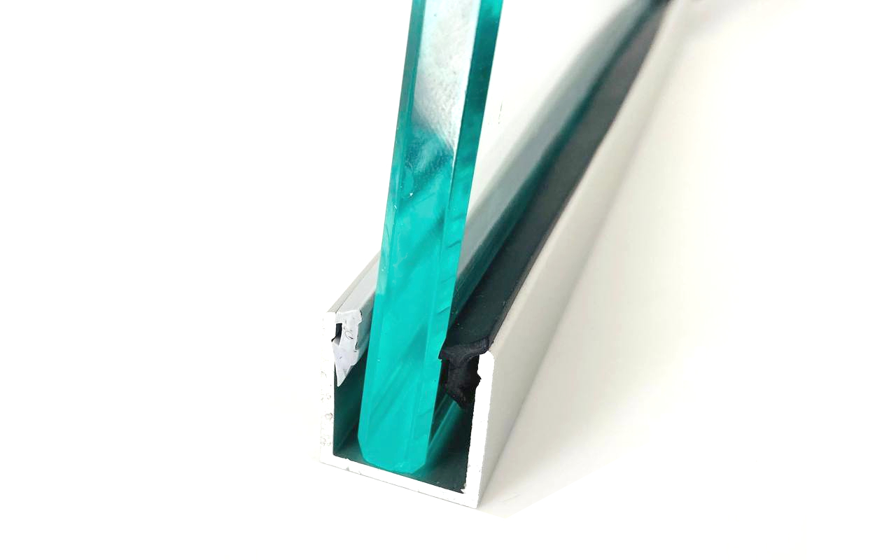 Нижний опорный профиль монтируется в пол на саморезы, затем в него устанавливается стекло. После этого по краям фиксируются уплотнительные резинки.