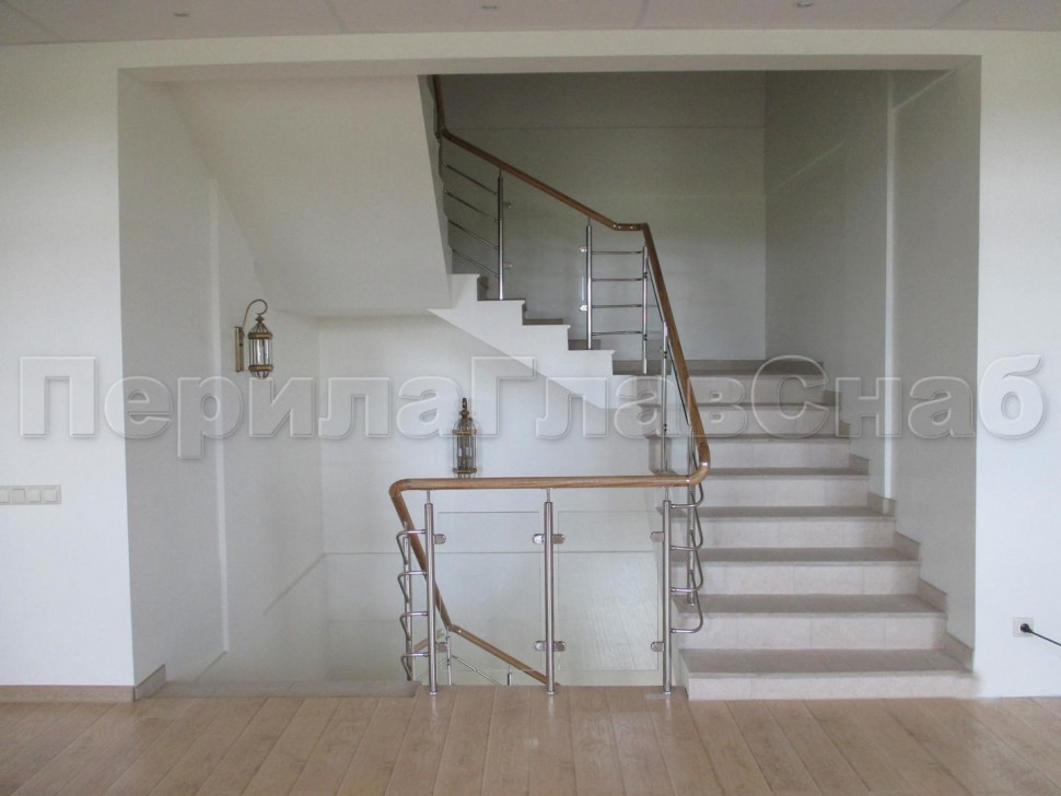 Ограждения лестницы без поручня с зажимными стеклодержателями и стойками
