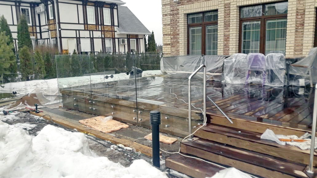 Балконные ограждения из стекла на министойках