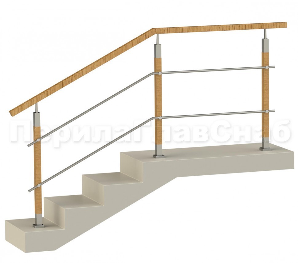 Два ригеля на держателях, квадратный деревянный поручень и квадратные деревянные стойки