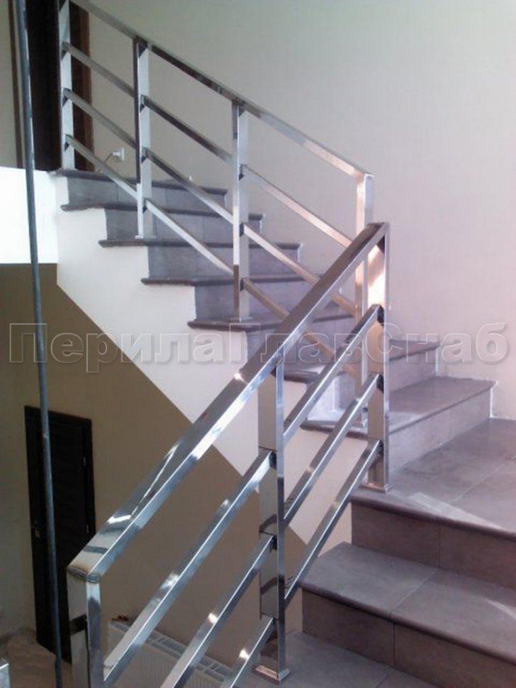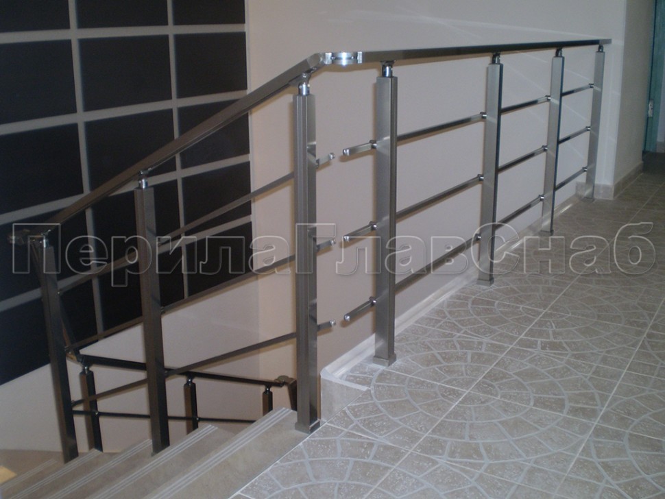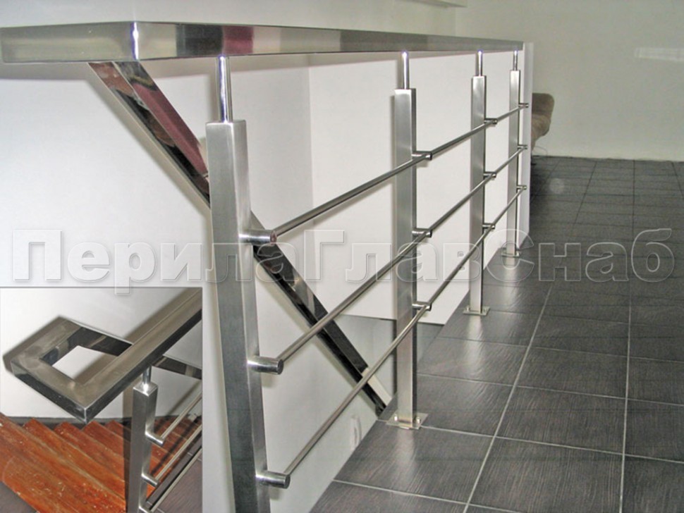Четыре ригеля на сварке, круглый поручень и квадратные стойки