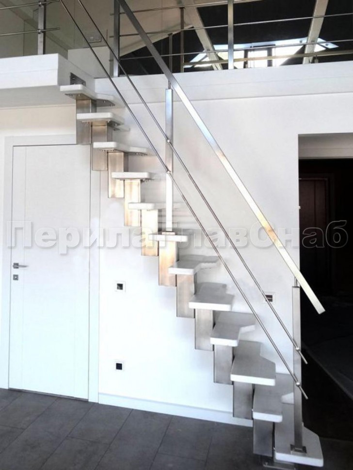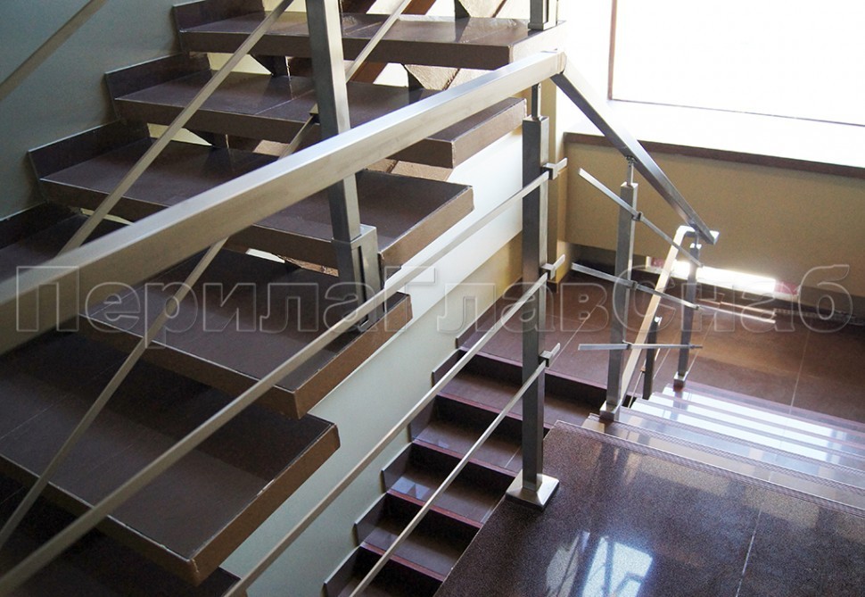 Ограждения с квадратным поручнем со стойками в каждую ступень без ригелей