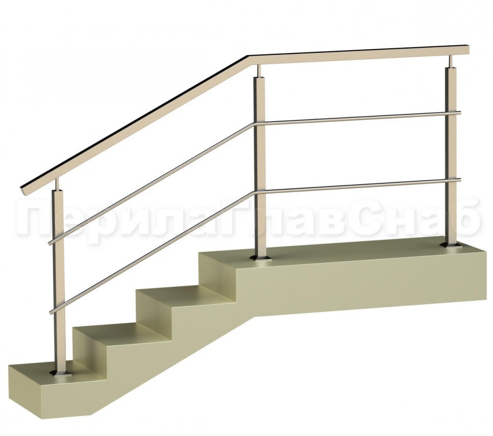 Два ригеля на держателях, круглый поручень и квадратные стойки