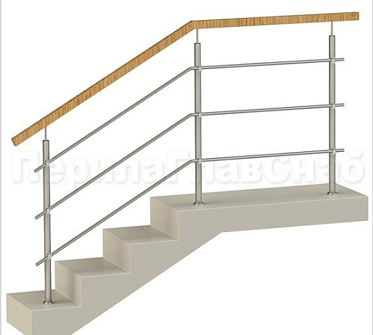Три ригеля на держателях, квадратный деревянный поручень и круглые стойки