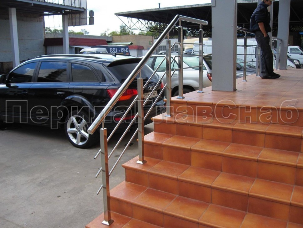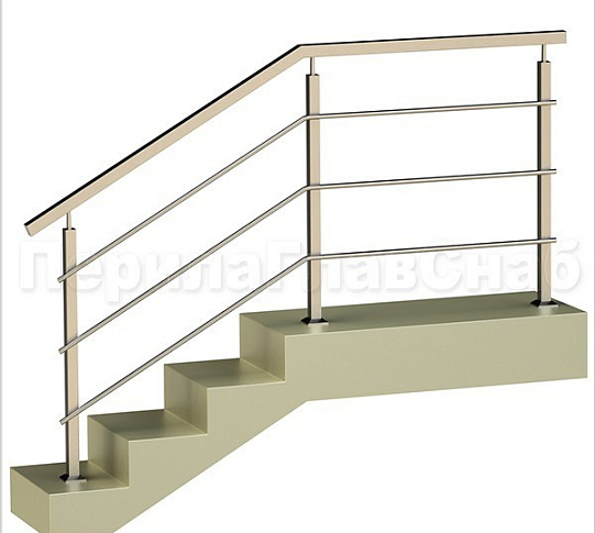 Четыре ригеля на сварке, круглый поручень и квадратные стойки