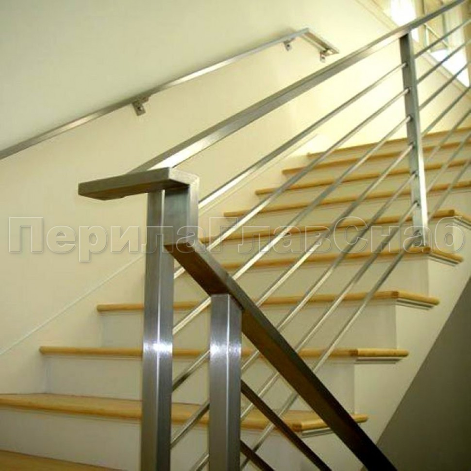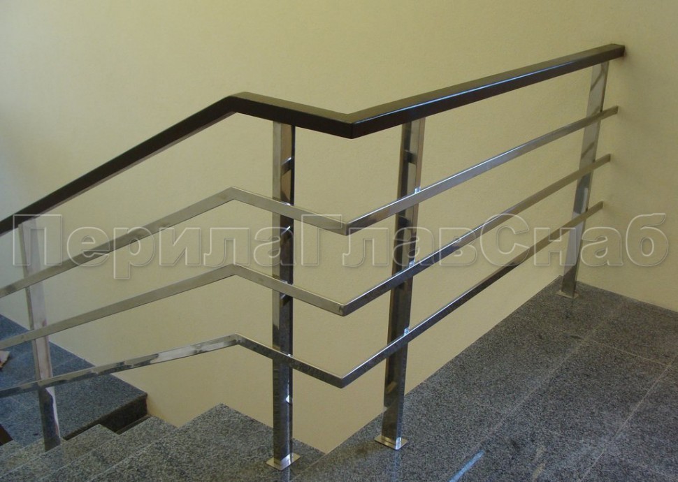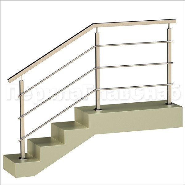 Четыре ригеля на держателях, квадратный поручень и квадратные стойки