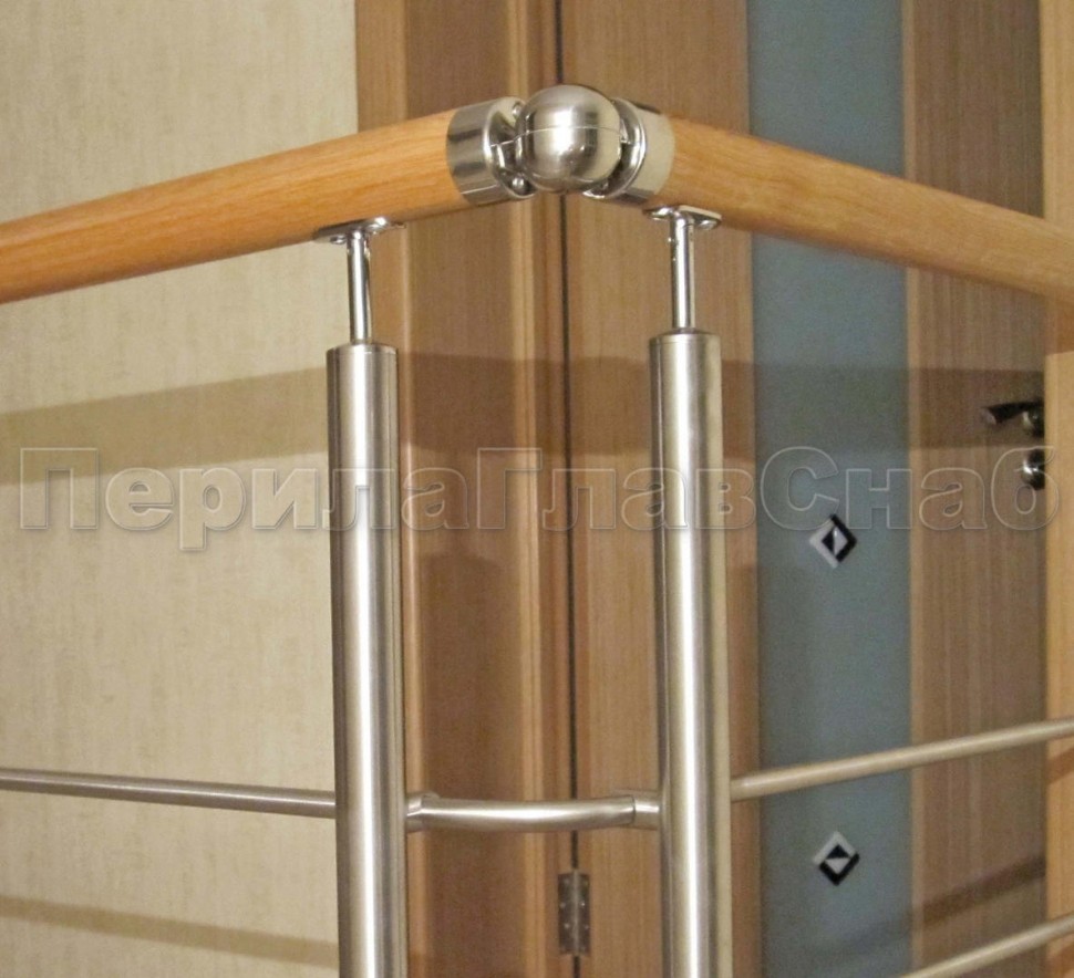 Нержавеющие ограждения без ригелей с круглым поручнем и стойками с деревянными вставками