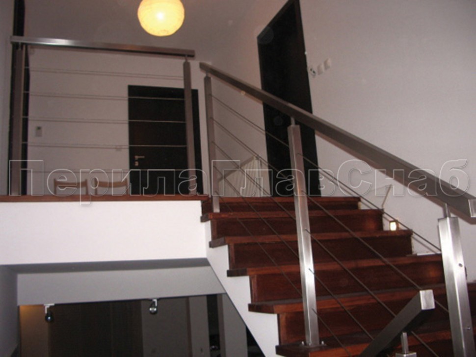 Ограждения из нержавейки. Заполнение из 4х тросиков. Квадратные стойки.