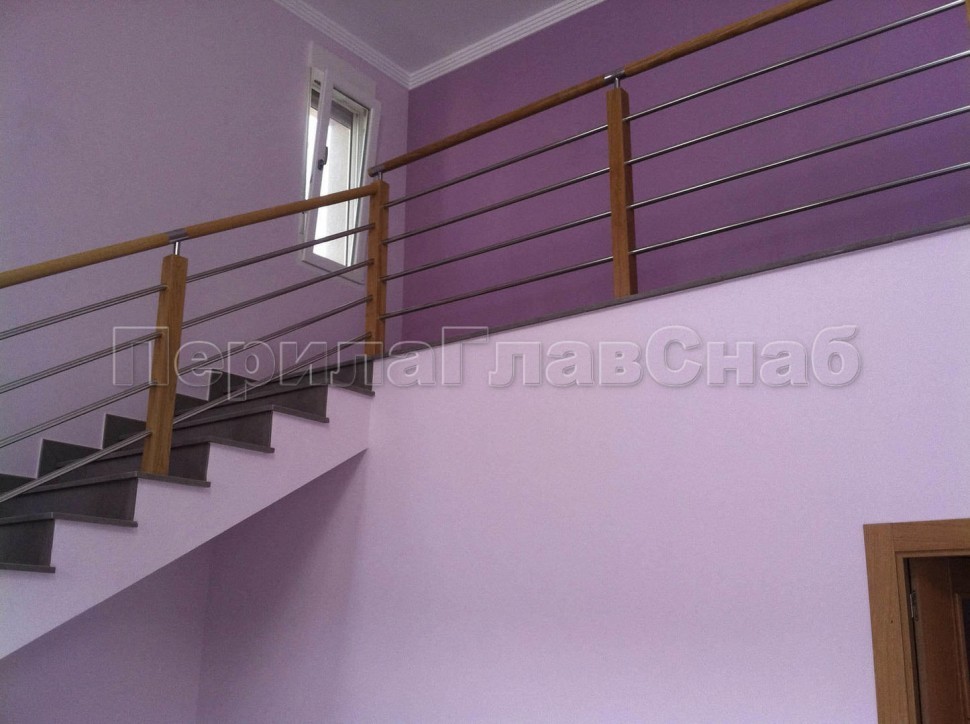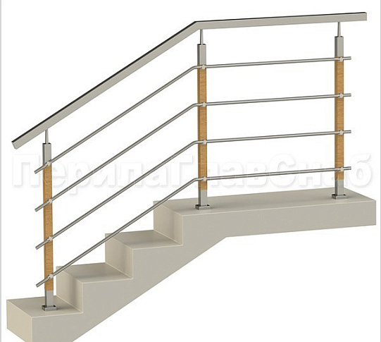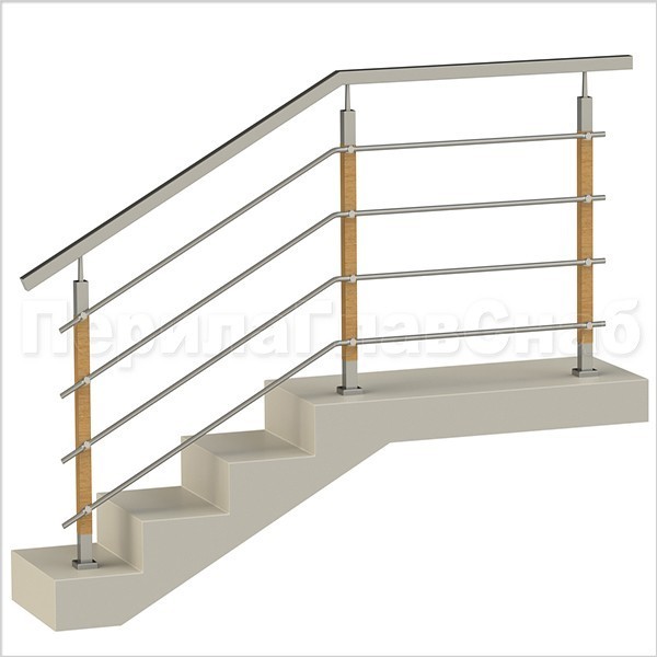 Четыре ригеля на держателях, квадратный поручень и стойки с деревянными вставками