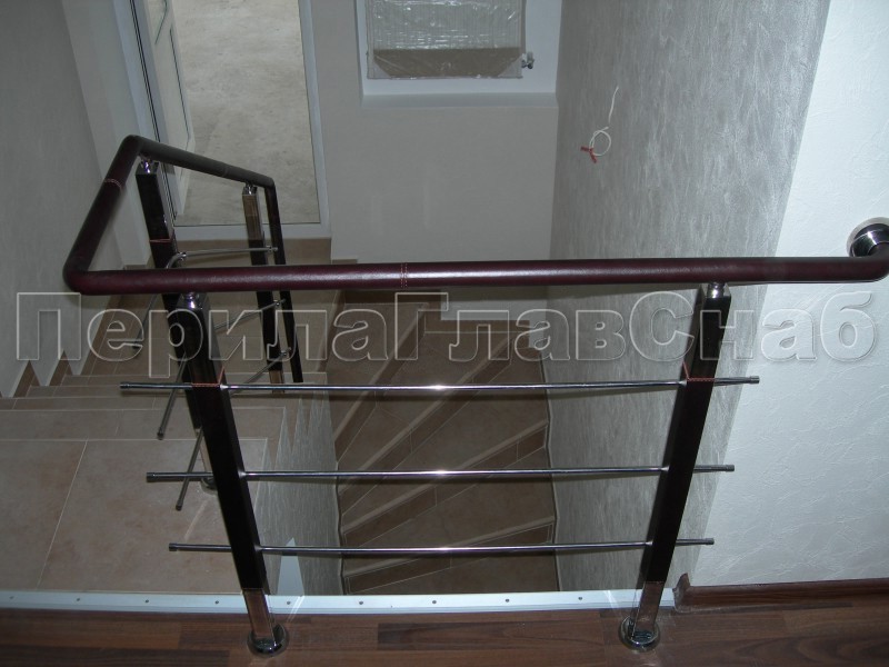 Четыре ригеля на сварке, квадратный поручень и круглые стойки