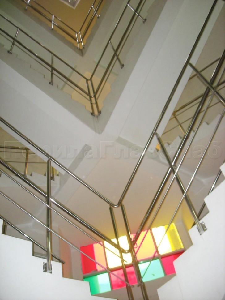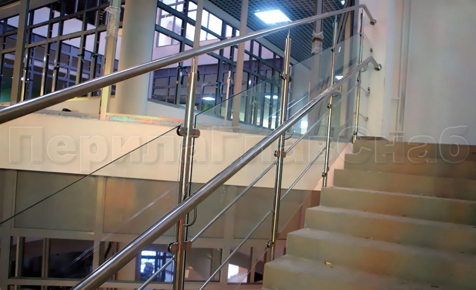 Нержавеющие ограждения для детских садов и учреждений с заполнением из каленого стекла.