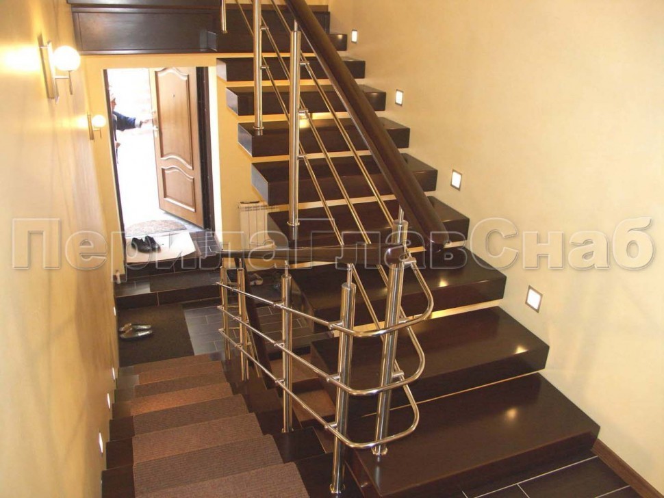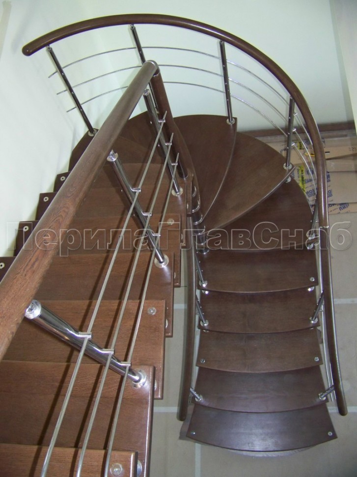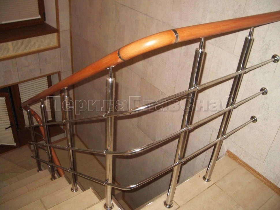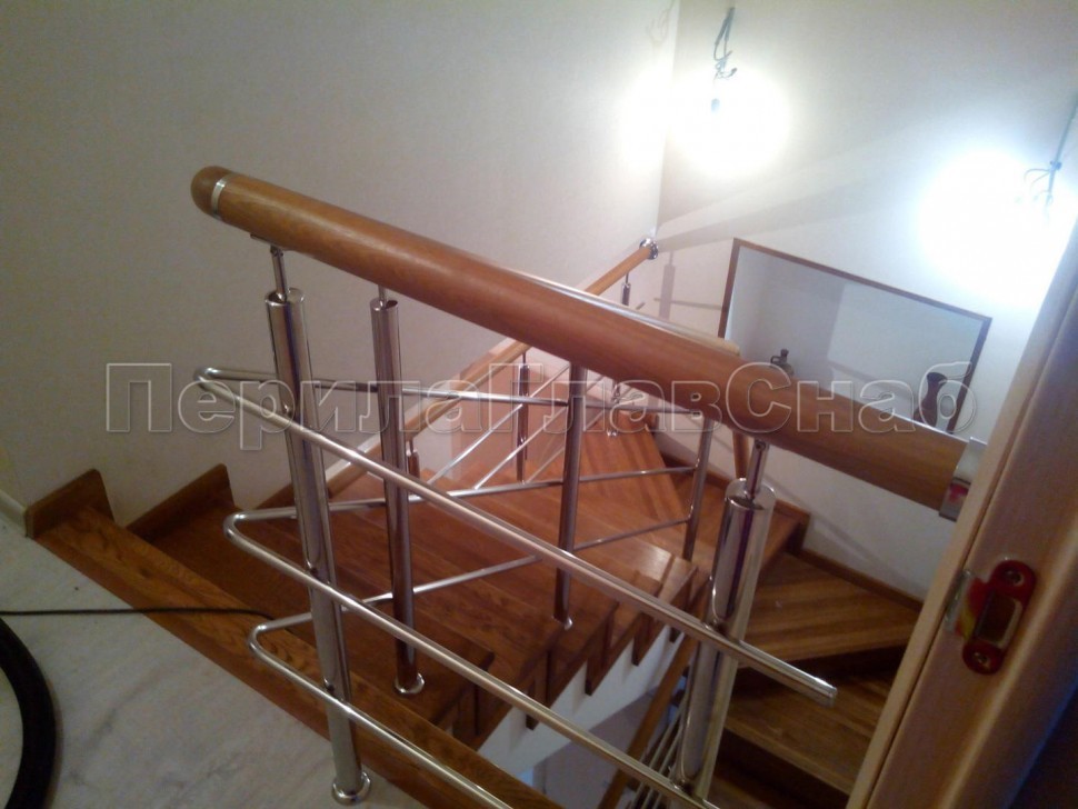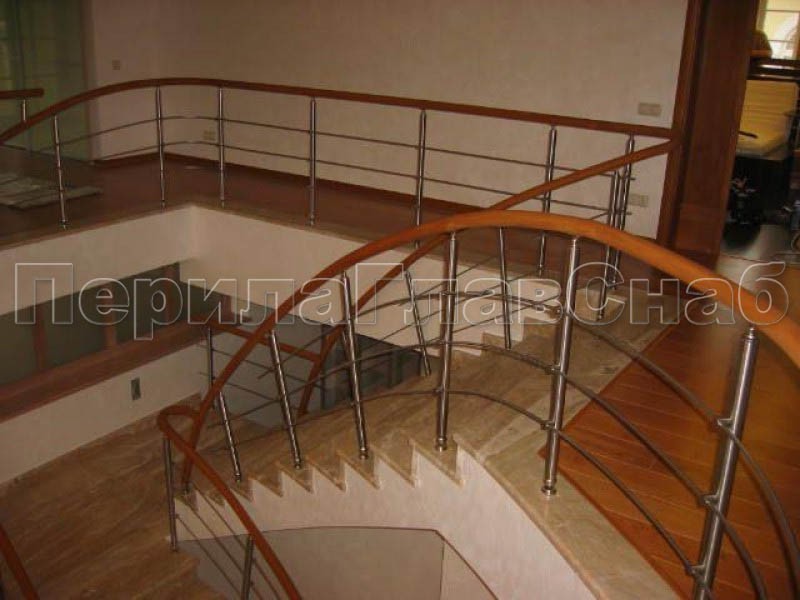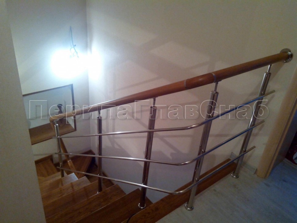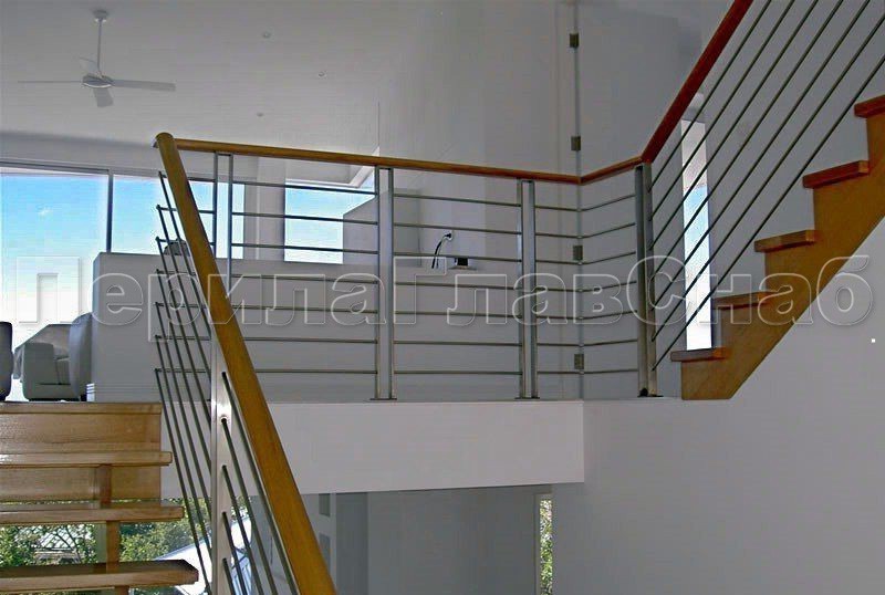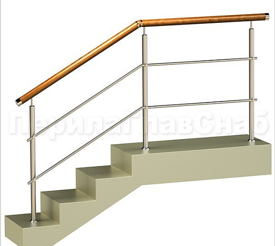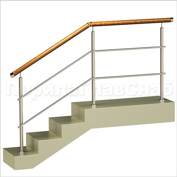 Записаться на встречу Два ригеля на держателях, круглый деревянный поручень и круглые стойки