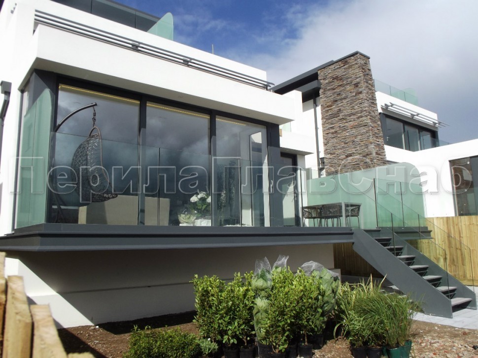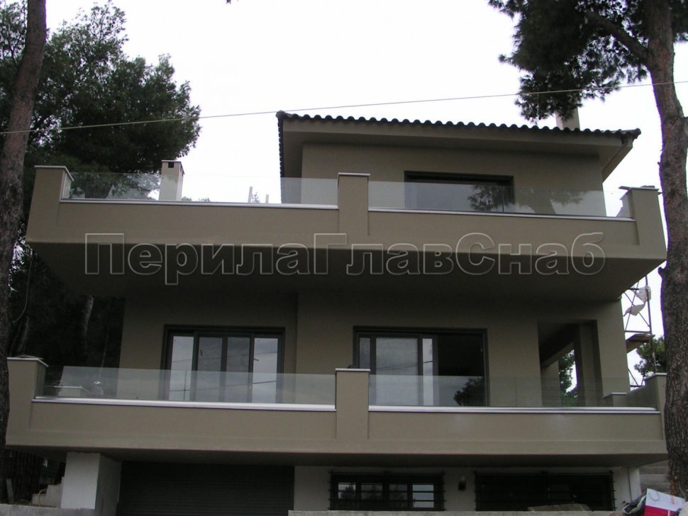 Ограждение с профильным поручнем с пазом на точечном креплении
