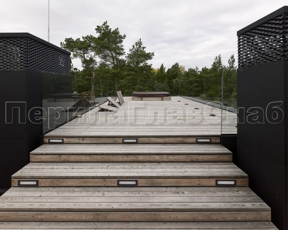 Ограждение с деревянным поручнем на выносе на точечном креплении