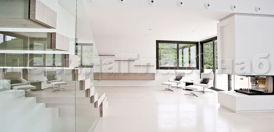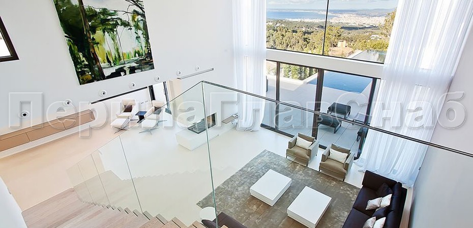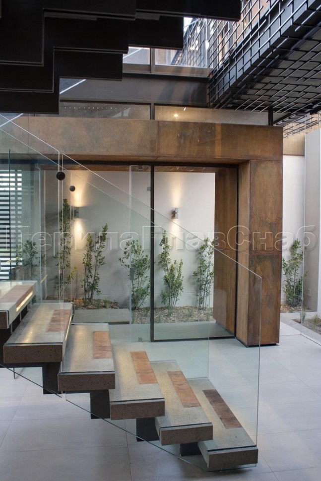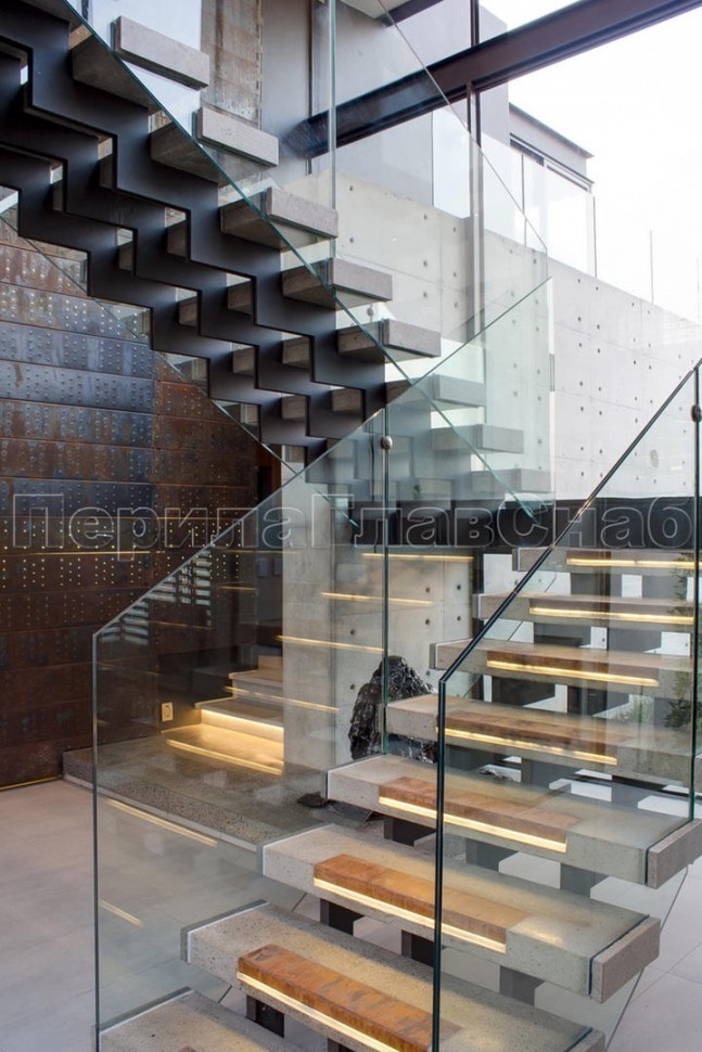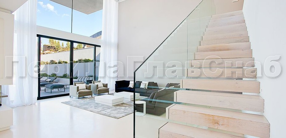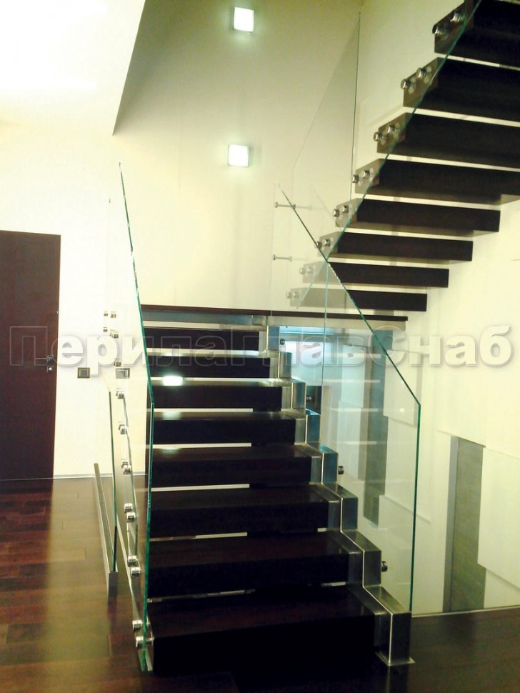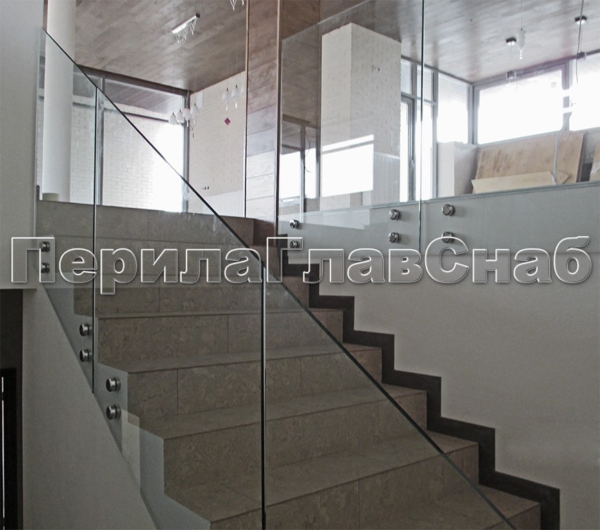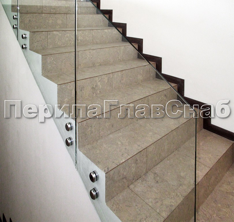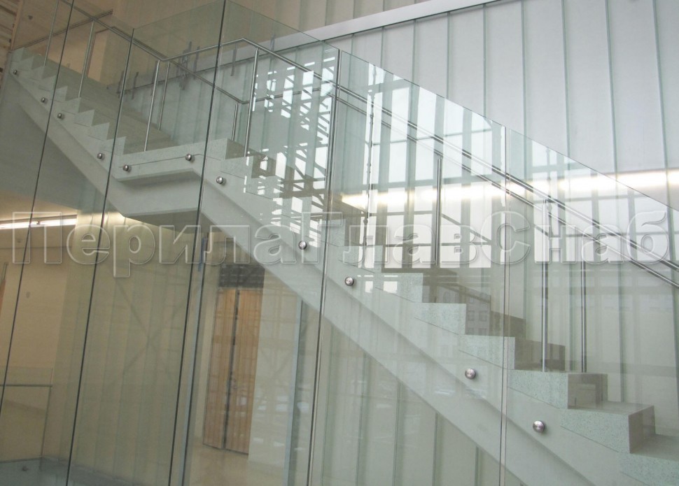 Ограждение без поручня на точечном креплении на лестнице