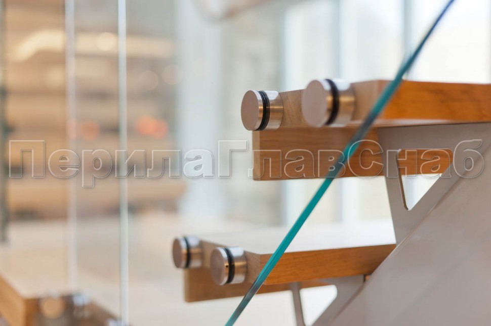 Ограждение с деревянным поручнем на точечном креплении