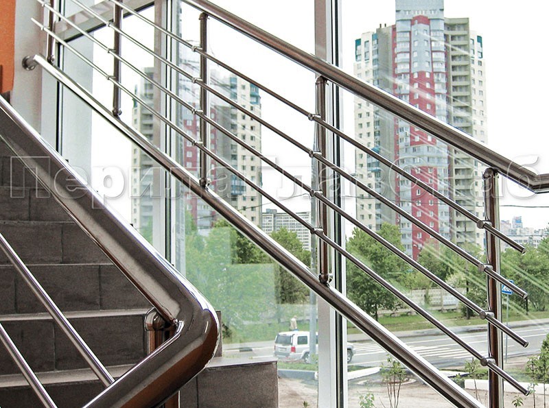 Межэтажное ограждение из нержавеющей стали с торцевым креплением для окон в Новосибирске. Готовые проекты ПерилаГлавСнаб