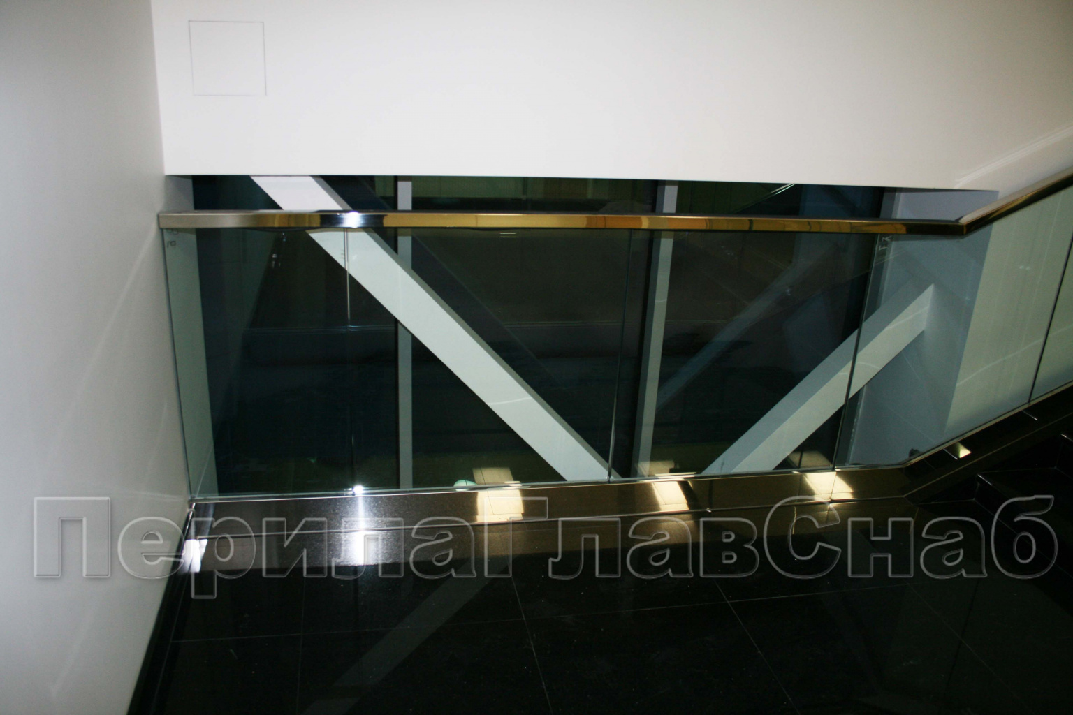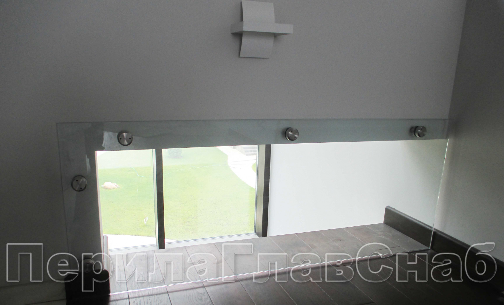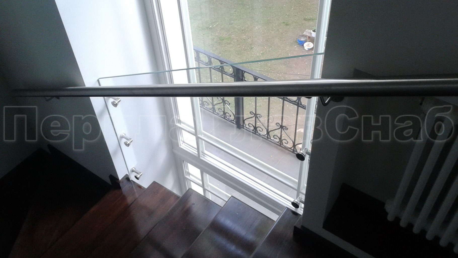 Ограждения со стеклом с крепление в пол окна на лестничной площадке в Новосибирске. Готовые проекты ПерилаГлавСнаб - фото 1