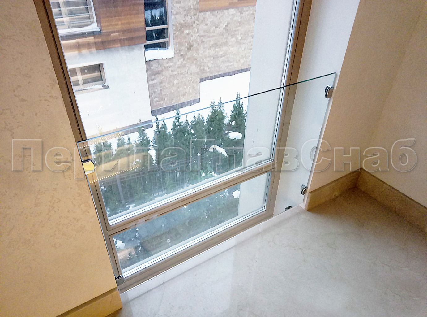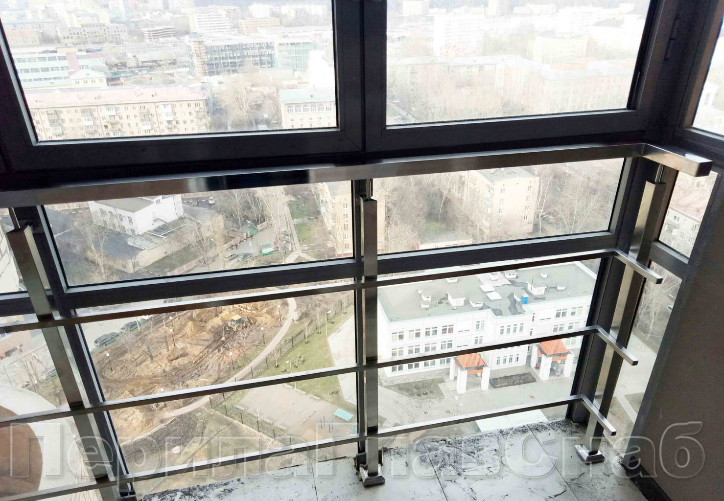 Межэтажное ограждение из нержавеющей стали с торцевым креплением для окон
