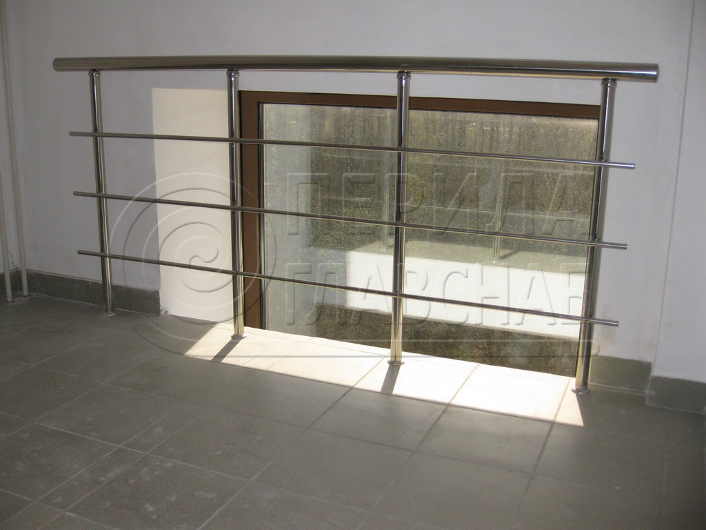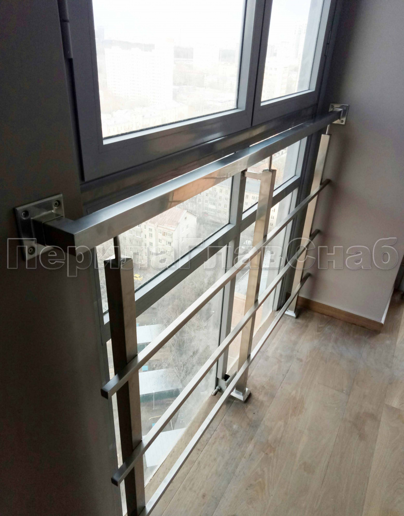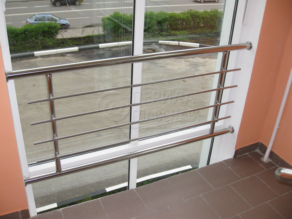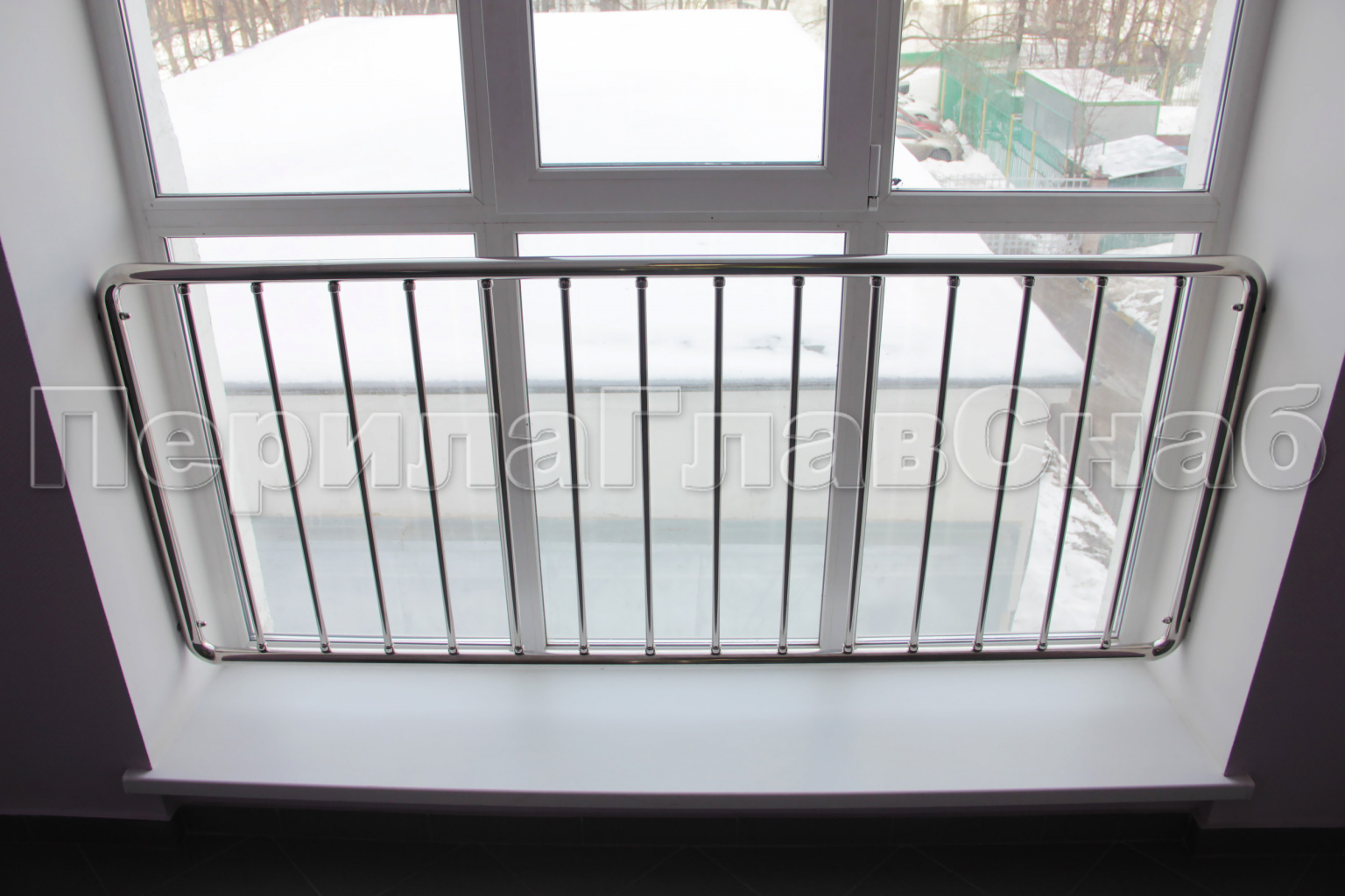Ограждениие из нержавейки со стеклом для окон в Новосибирске. Готовые проекты ПерилаГлавСнаб - фото 1