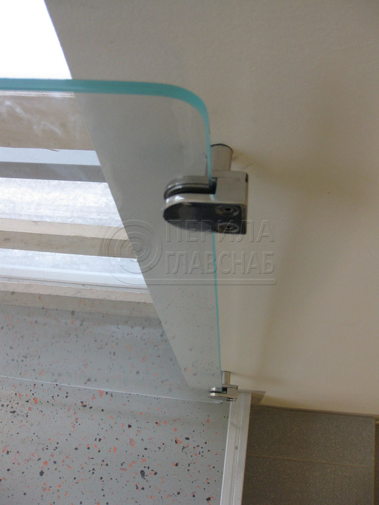 Ограждения со стеклом с крепление в пол окна на лестничной площадке в Новосибирске. Готовые проекты ПерилаГлавСнаб