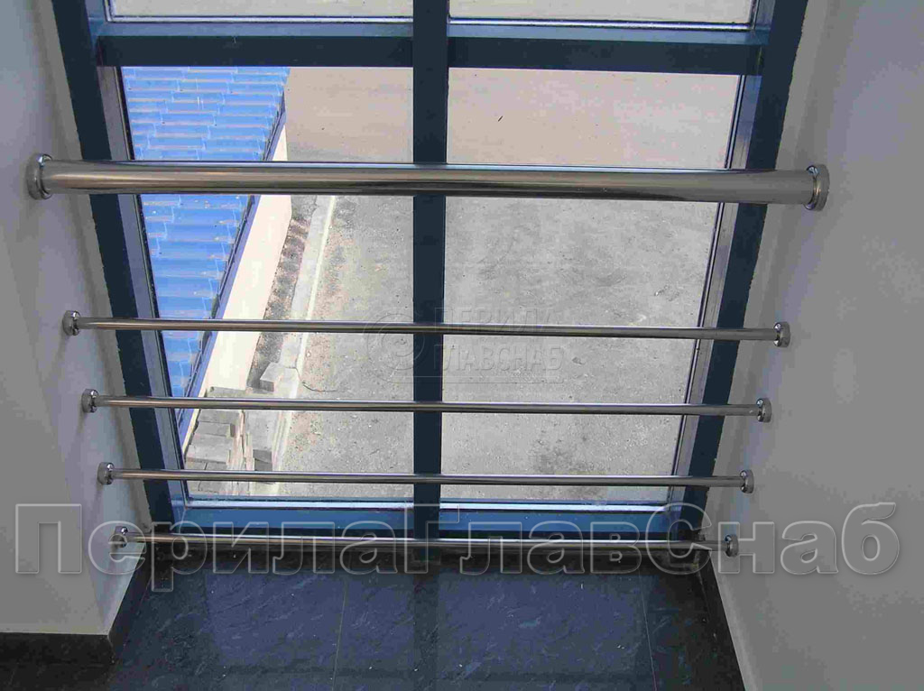 Ограждение на окнах из нержавещей трубы с ригелями в Новосибирске. Готовые проекты ПерилаГлавСнаб - фото 1
