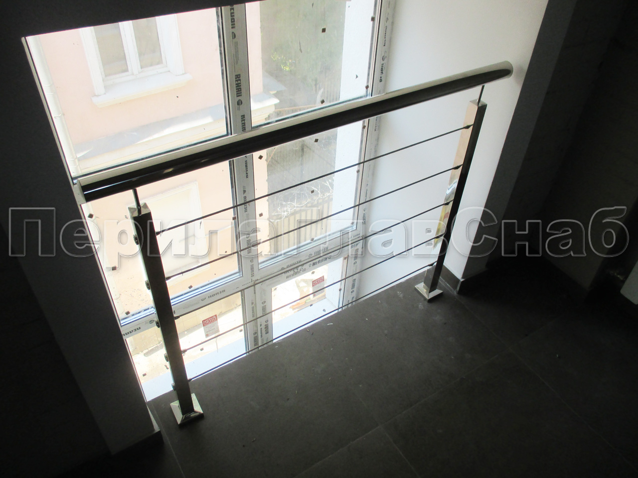 Межэтажное ограждение из нержавеющей стали с торцевым креплением для окон в Новосибирске. Готовые проекты ПерилаГлавСнаб - фото 1