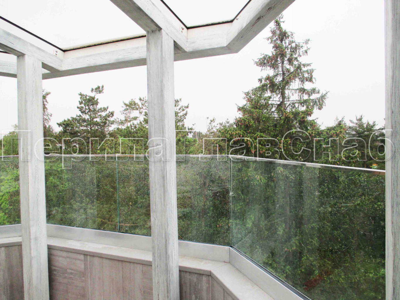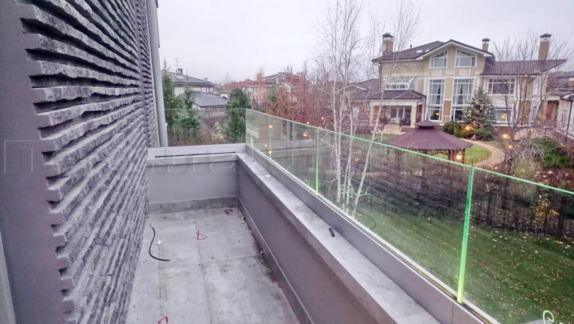Цельностеклянные перила на балконе частного дома в Подмосковье