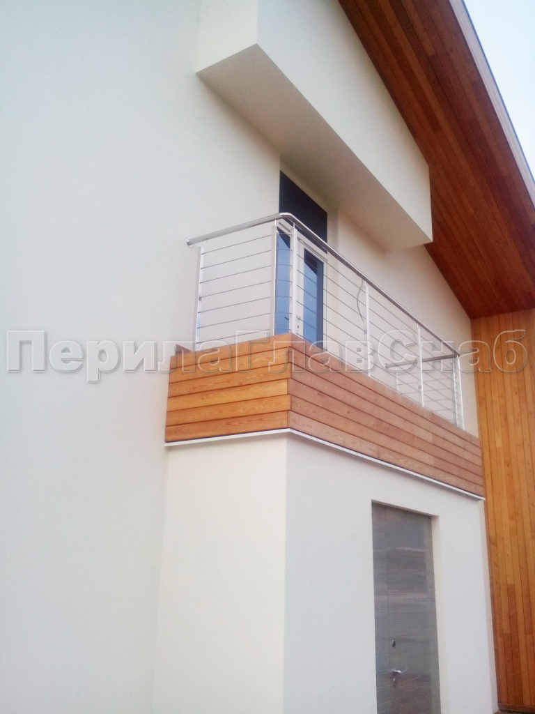 Ограждение из нержавеющей стали со стеклами для балкона в Новосибирске. Готовые проекты ПерилаГлавСнаб