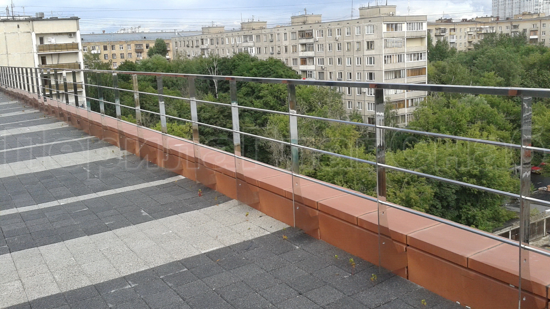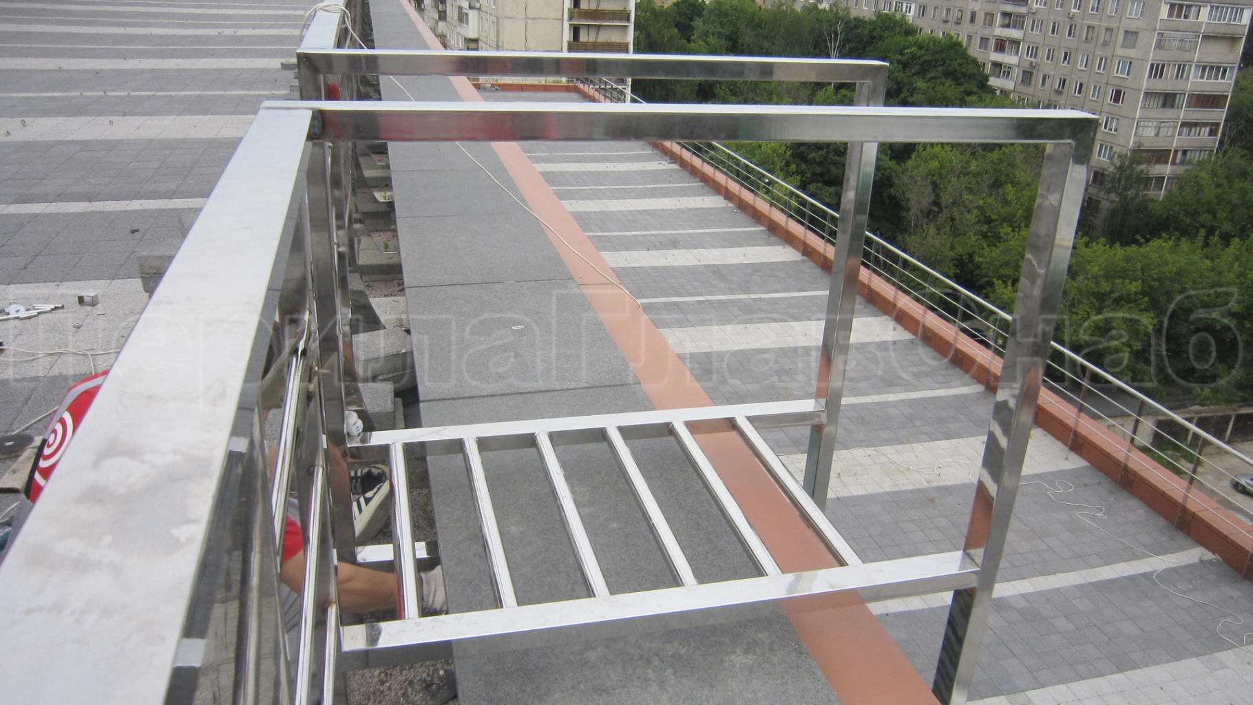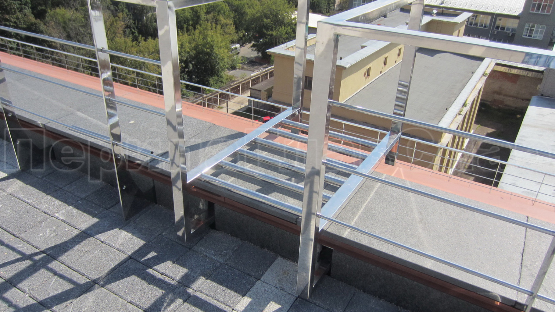Кровельное ограждение из нержавеющей стали со стеклами в Новосибирске. Готовые проекты ПерилаГлавСнаб