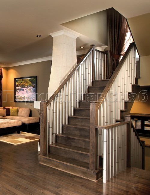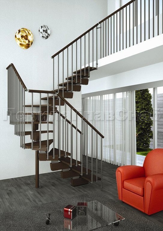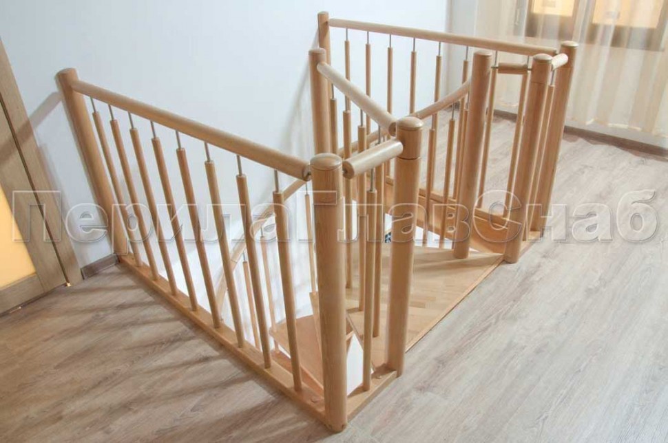 Записаться на встречу Ограждения с двумя стойками в каждую ступень с деревянным поручнем и без ригелей
