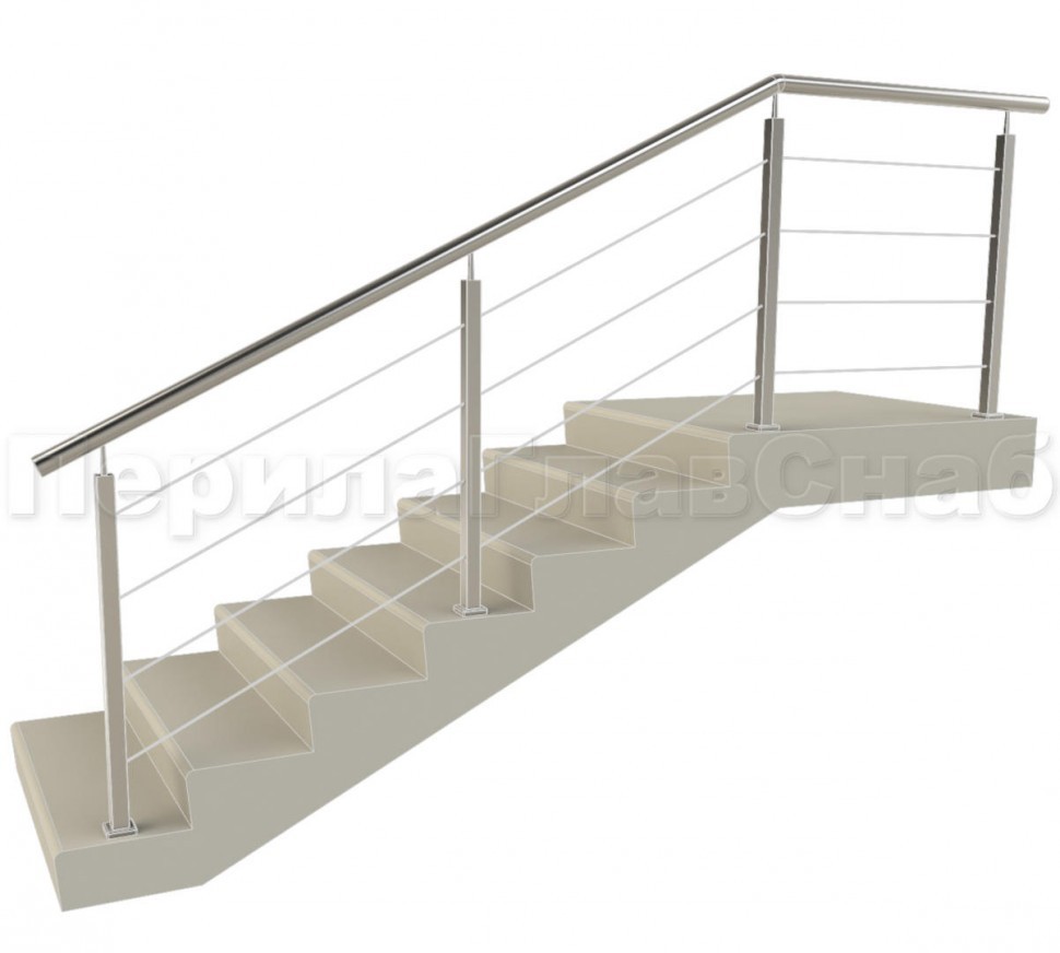 Записаться на встречу Ограждения из нержавейки. Заполнение из 4х тросиков. Квадратные стойки.