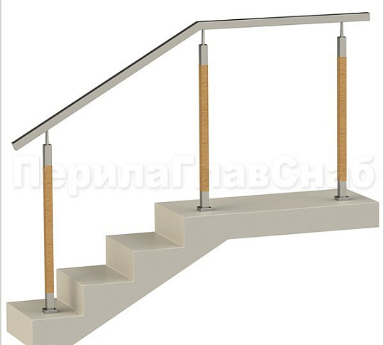 Три ригеля на сварке, квадратный деревянный поручень и круглые стойки