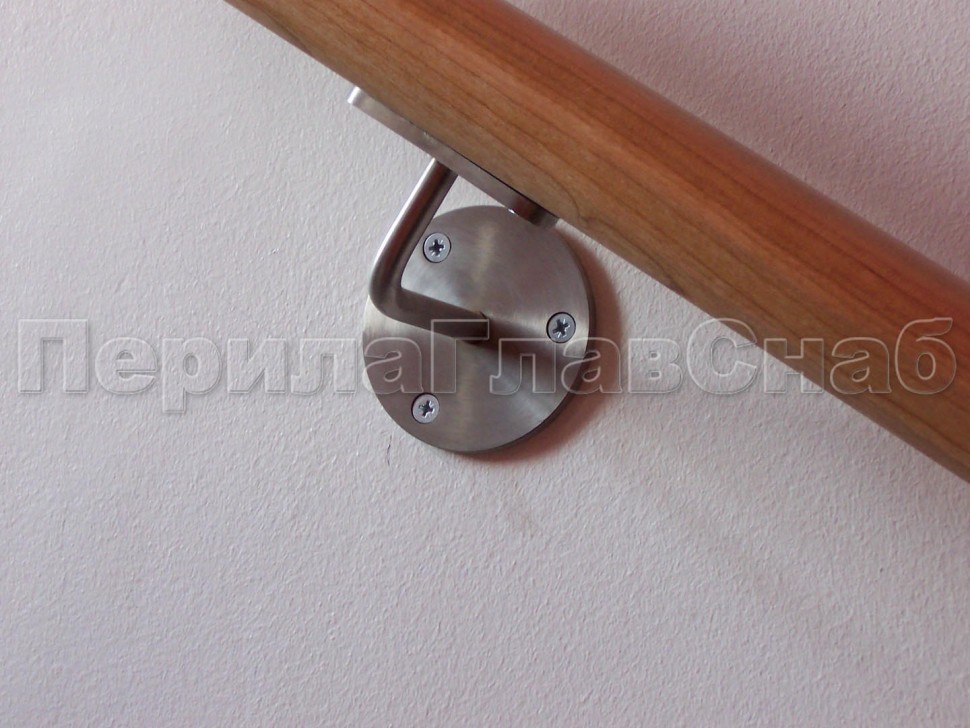 При завязке пристенного поручня с поручнем основных ограждений можно использовать специальные деревянные сегменты, которые крепятся к поручню через штифт + клей + специальное нержавеющее соединительное кольцо. Дешевле использовать шарнирные повороты. Надежнее использовать нержавеющие отводы, которые через саморез крепятся к поручням.