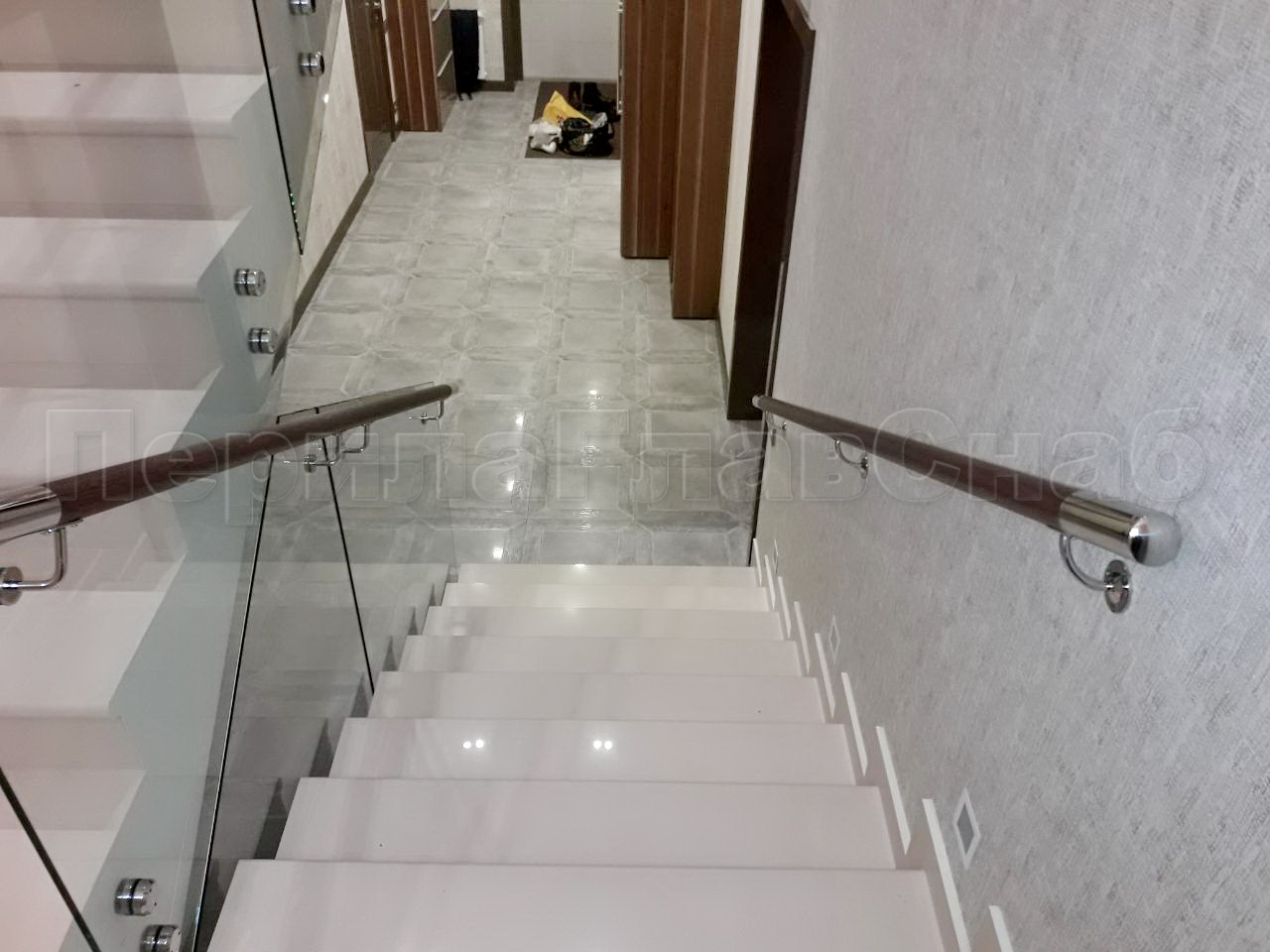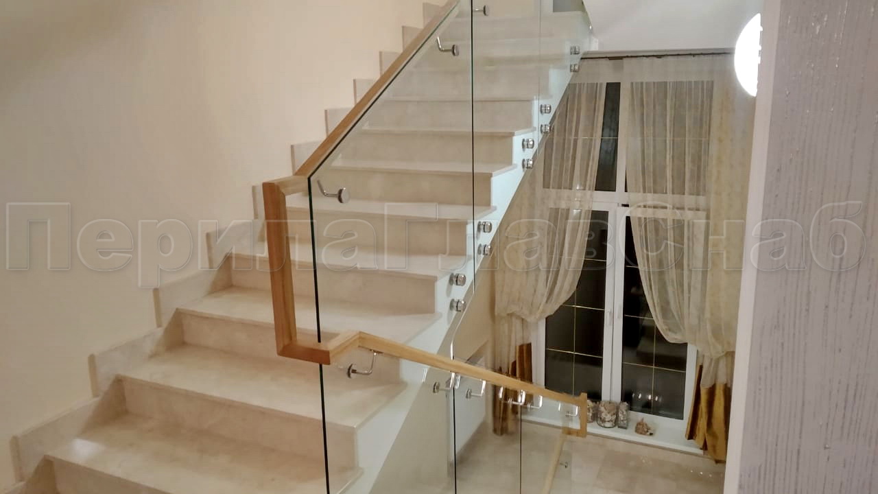 Ограждение с деревянным поручнем на точечном креплении на лестнице в Новосибирске. Готовые проекты ПерилаГлавСнаб - фото 1 Ограждение с деревянным поручнем на точечном креплении на лестнице в Новосибирске. Готовые проекты ПерилаГлавСнаб - фото 2