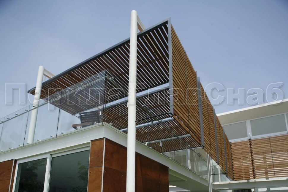 Ограждение с деревянным поручнем на точечном креплении