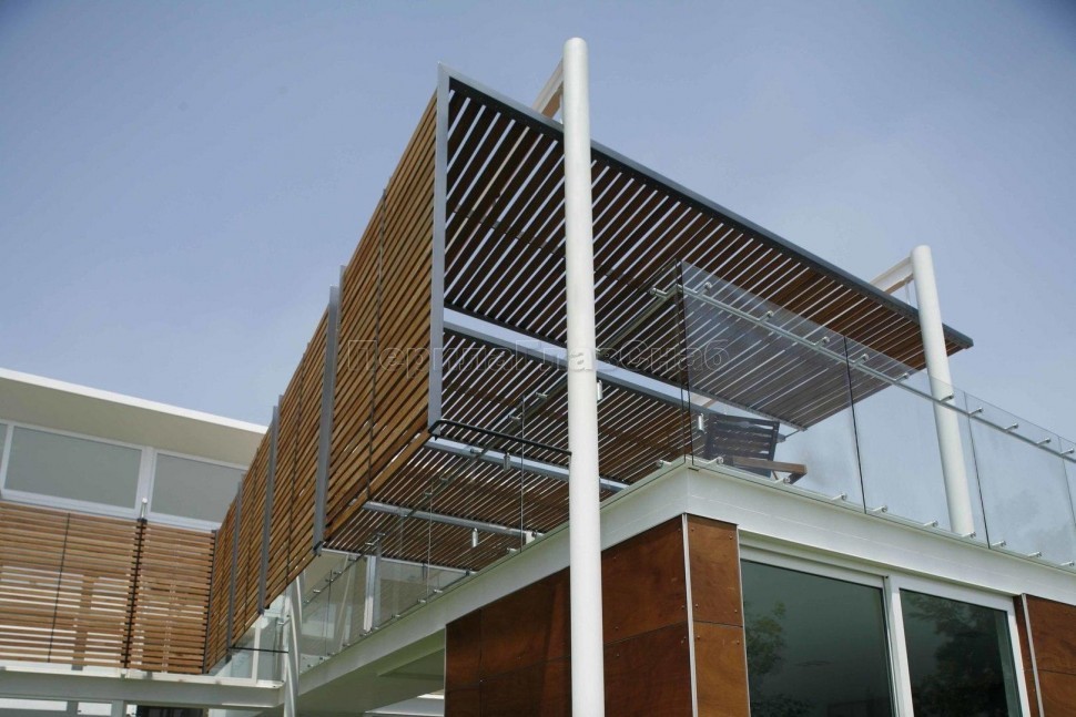 Ограждение с деревянным поручнем на выносе на точечном креплении