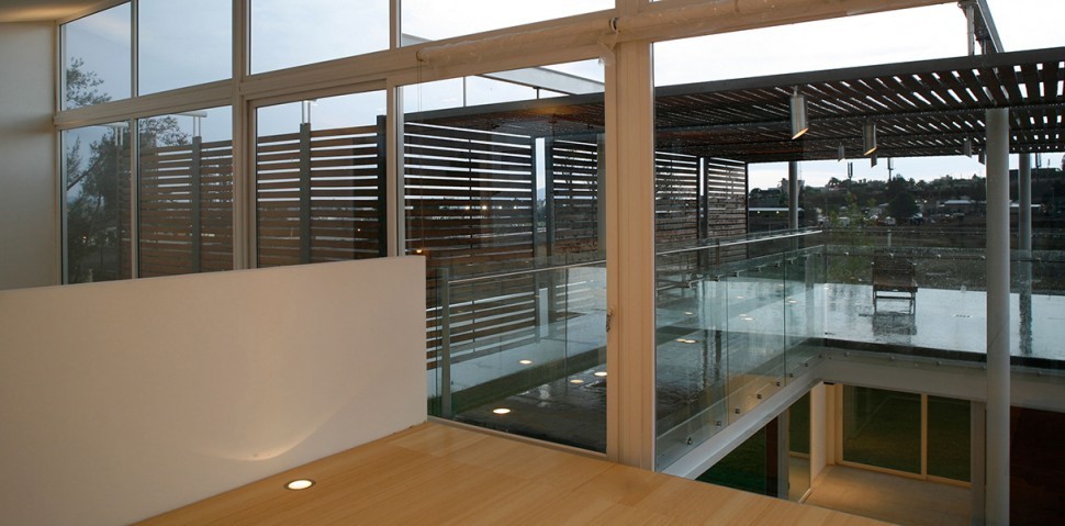 Ограждение без поручня на точечном креплении на лестнице